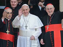 (Once you arrive at the Vatican website, select the tab Video in the top right corner. You will then go to a multi-selection screen. Scroll by using the faded arrows on the side of the screen. You will see the video titled Audience with the Cardinals)